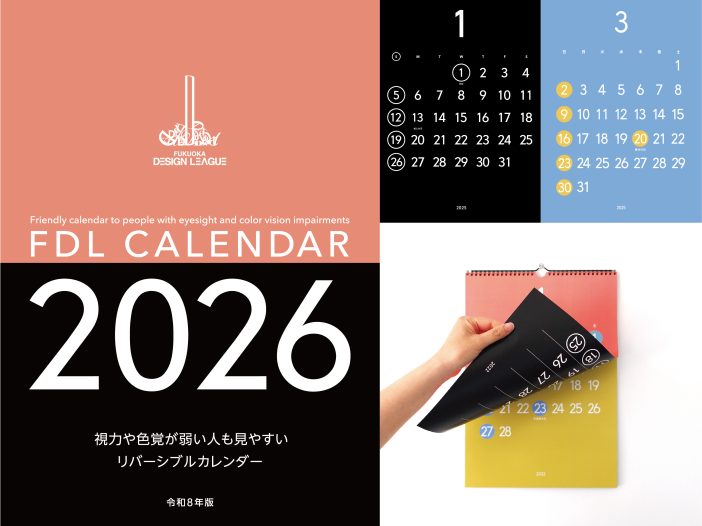 色覚に制限がある人にも移り変わる季節を感じられるカラー面と、視力の弱い人にも見やすい黒白面のリバーシブルカレンダーです。2色覚の人が見分けにくかった祝日の赤文字や見えづらい配色などに配慮し、また多くの人に共感していただけ […]